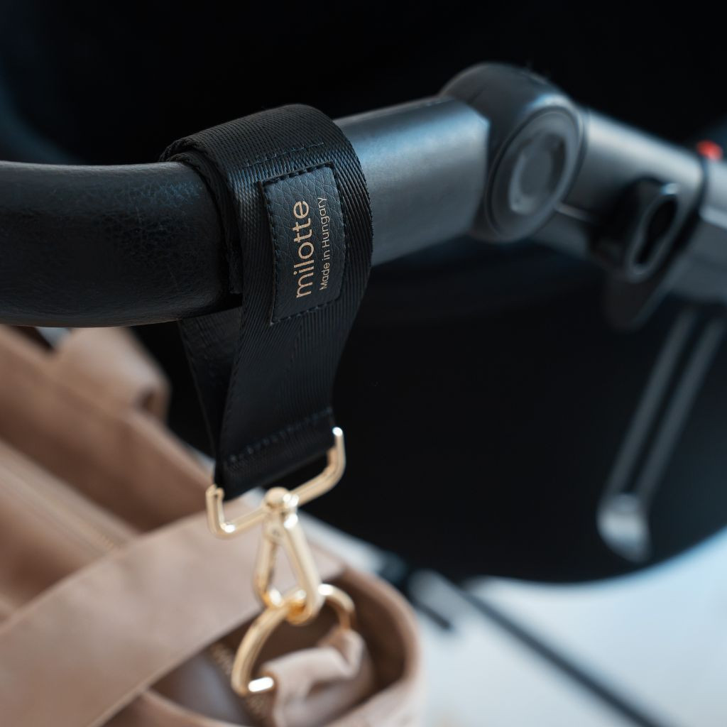 Milotte babakocsi csat – stílusosan a legapróbb részletekig. A legkisebb Milotte kiegészítővel egy pillanat alatt rögzítheted táskád a babakocsira.